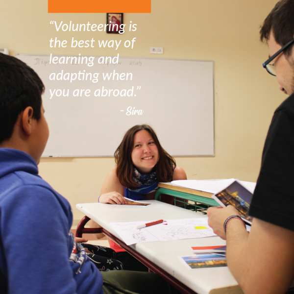 "Erasmus in Schools experience was an amazing opportunity to meet local students, to learn a lot about their culture and to be able to share with them about my own country. It gave us the chance to explain in plain and simple words how great is to go abroad for studying or for an internship and to motivate young people to keep on moving around Europe (and the world). We shared curiosity and laughs, and I personally think that's the key of promoting mobility as a lifestyle. Becoming a volunteer in another country made me feel like I was contributing to that country, that population, that culture. It's the best way of learning more and adapting more when you are abroad." -Sira